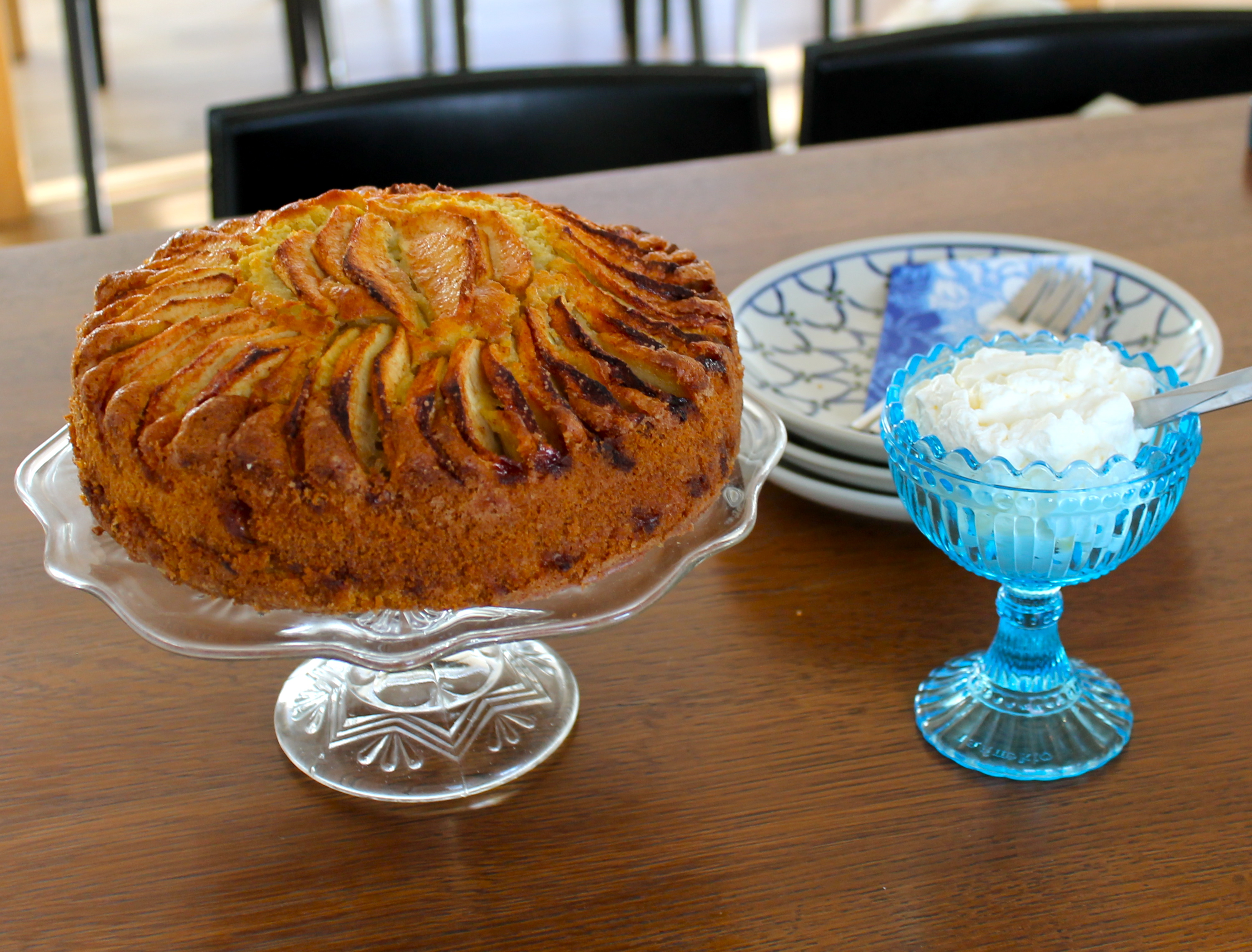 IMG_6512Bakið við 150°C í 60-80 mínútur – fer eftir stærð formsins og ofninum sem bakað er í.  Stingið prjóni í kökuna til að vera viss hvort hún er bökuð.  Látið kökuna kólna í forminu a.m.k. til hálfs áður en hún er tekin úr því.