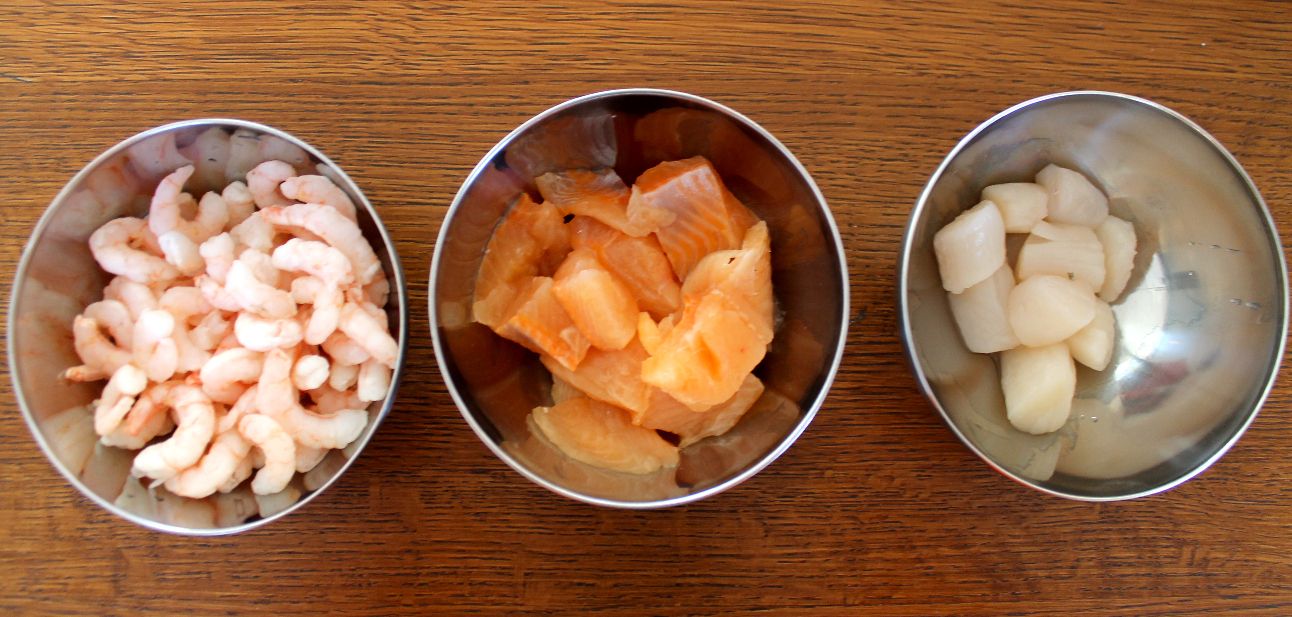 - 700 gr. fiskur og sjávarfang að eigin vali, ýsa, þorskur, lax, silungur, rækjur, hörpuskel