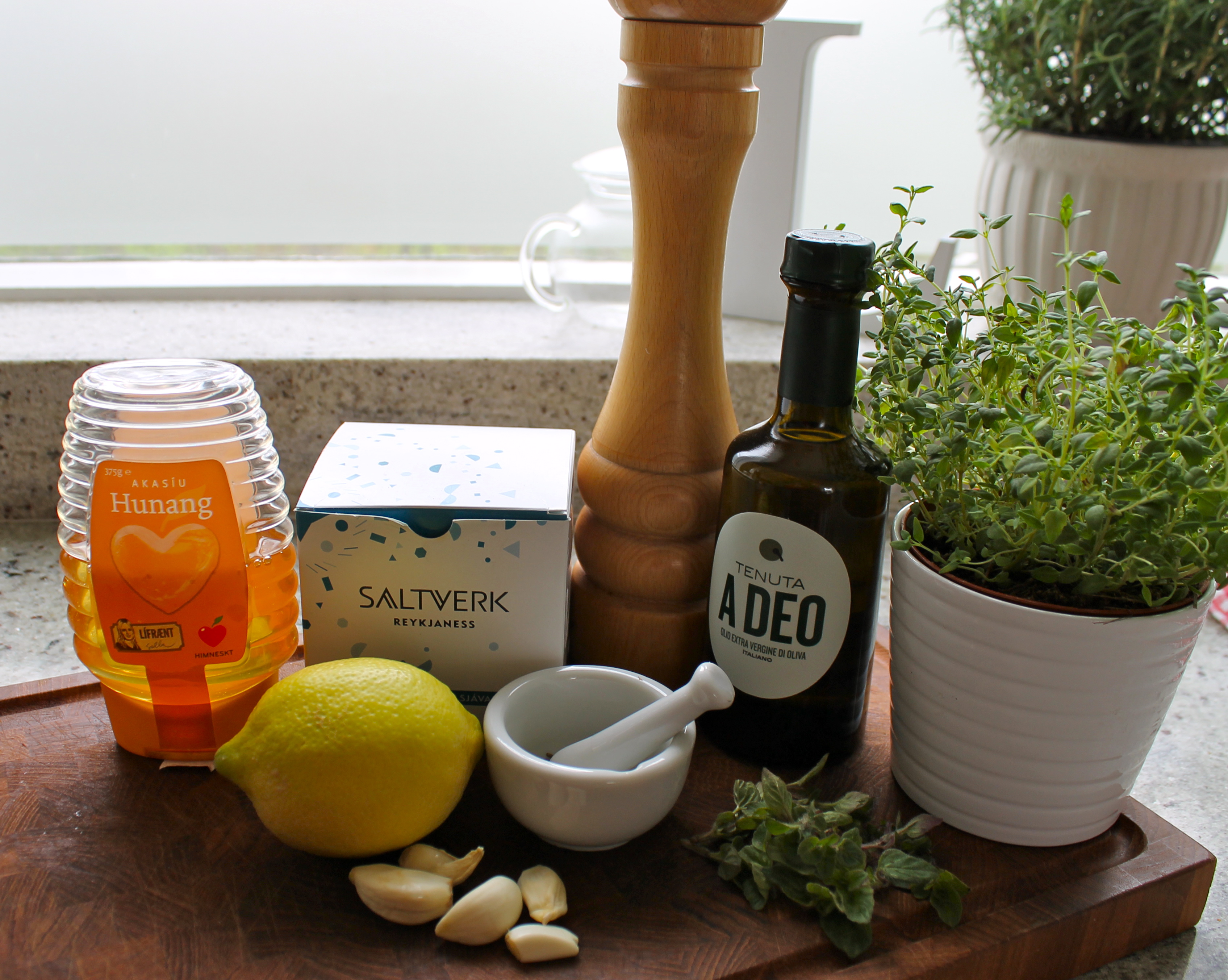 - 1 sítróna – safi og rifinn börkur