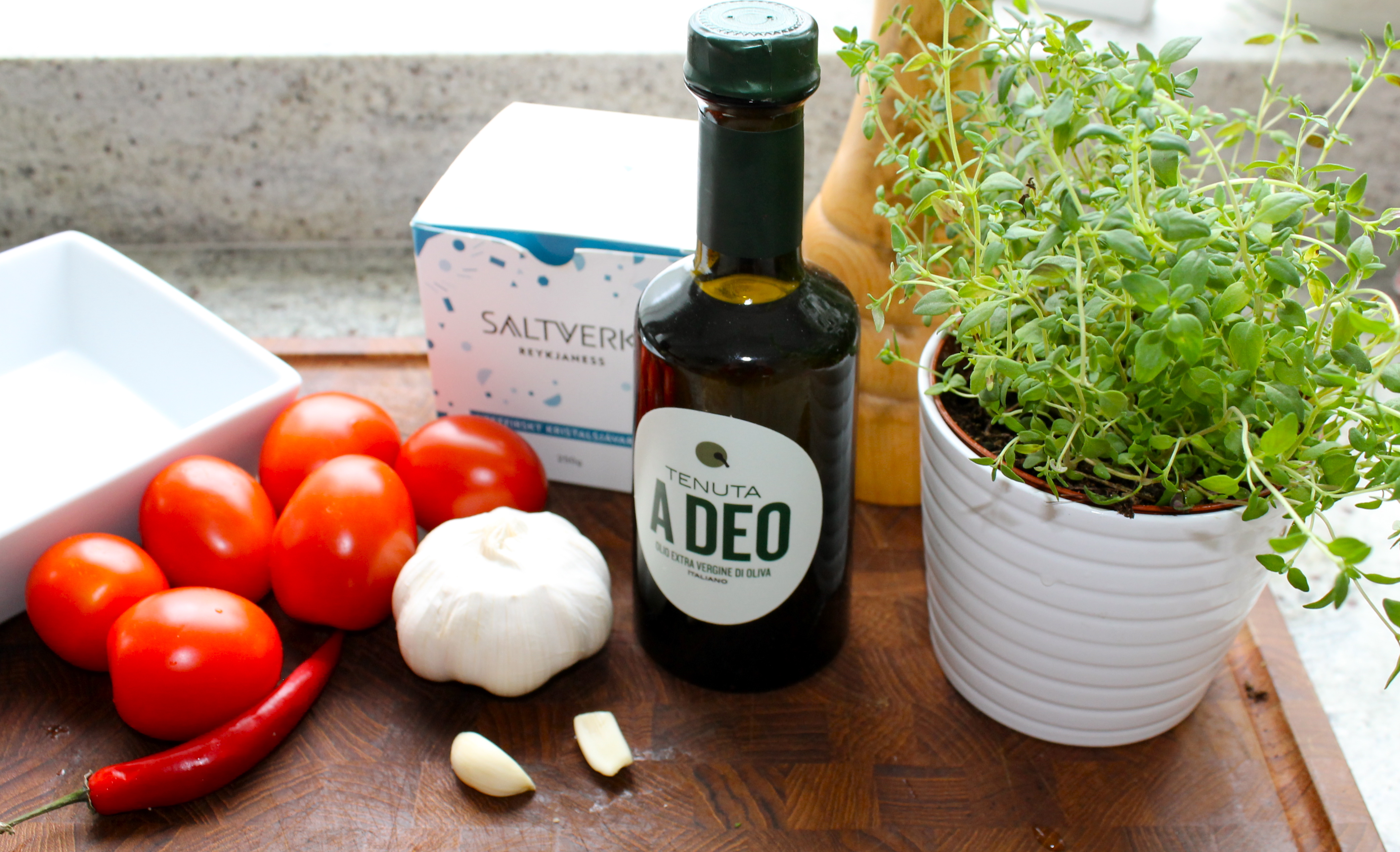 - 2 hvítlauksgeirar – skornir smátt eða marðir í hvítlaukspressu