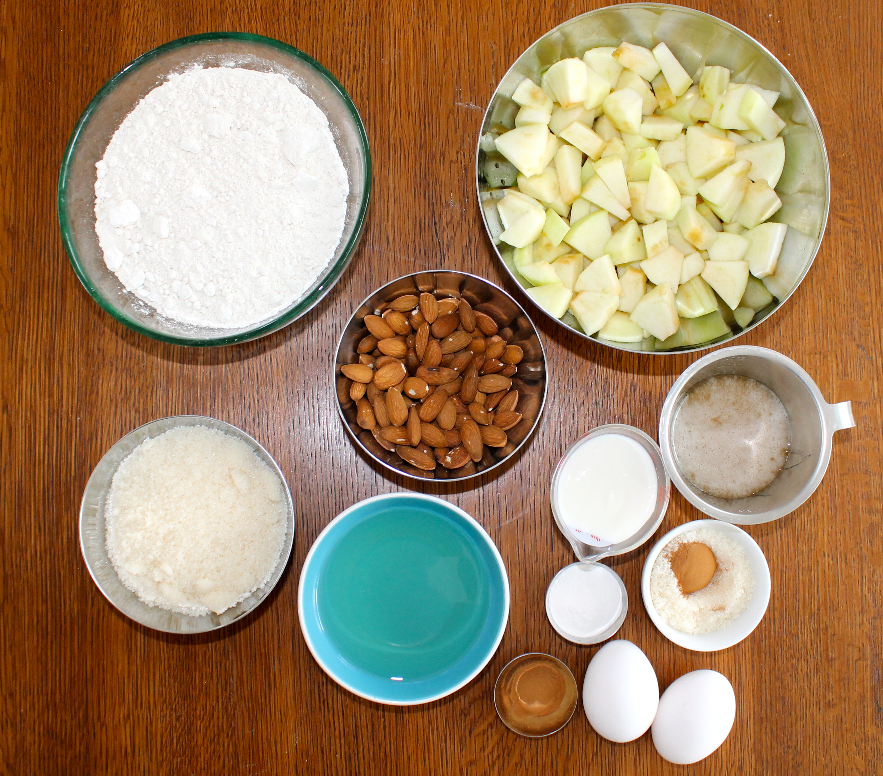 Hrærið egg, sykur, hunang, jógúrt og olíu saman. Blandið þurrefnunum saman og hærið saman við útí eggjahæruna. Að síðustu er eplunum hrært saman við.