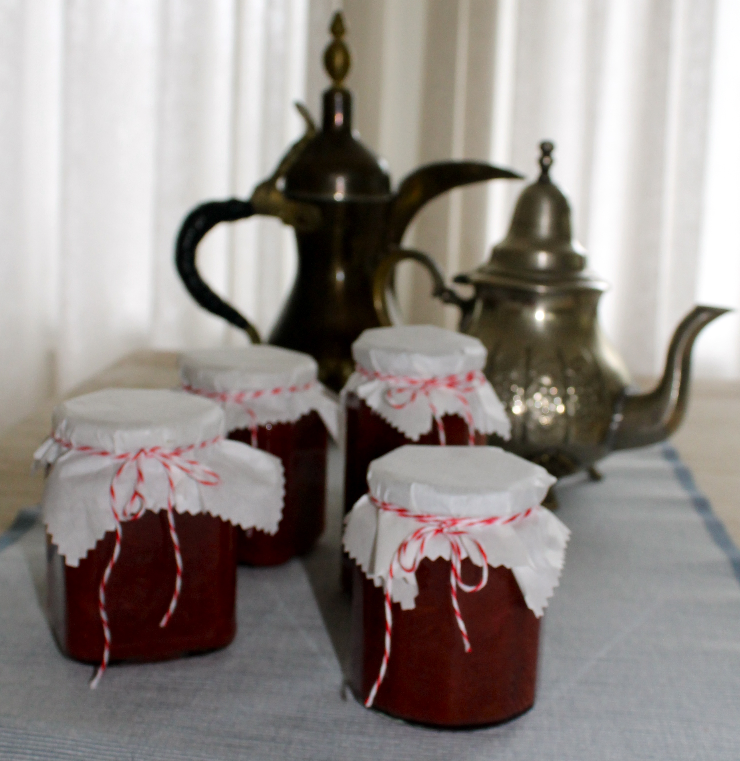 Ég var ekki alveg búin með rabarbarann í garðinum okkar svo ég ákvað að skella í nokkrar krukkur af sultu. Ekki alveg þessa hefðbundnu rabarabarasultu í þetta sinn heldur bættum við jarðarberjum útí. Sultan er mjög góð með pönnukökum og vöfflum, en líka á ristarbrauðið á morgnana og ýmislegt annað. Svo er líka svo gaman að eiga sultu í fallegri krukku til að færa vinum þegar maður fer í matarboð 🙂 Fallega skreytt sultukrukka er alltaf jafn vinsæl.