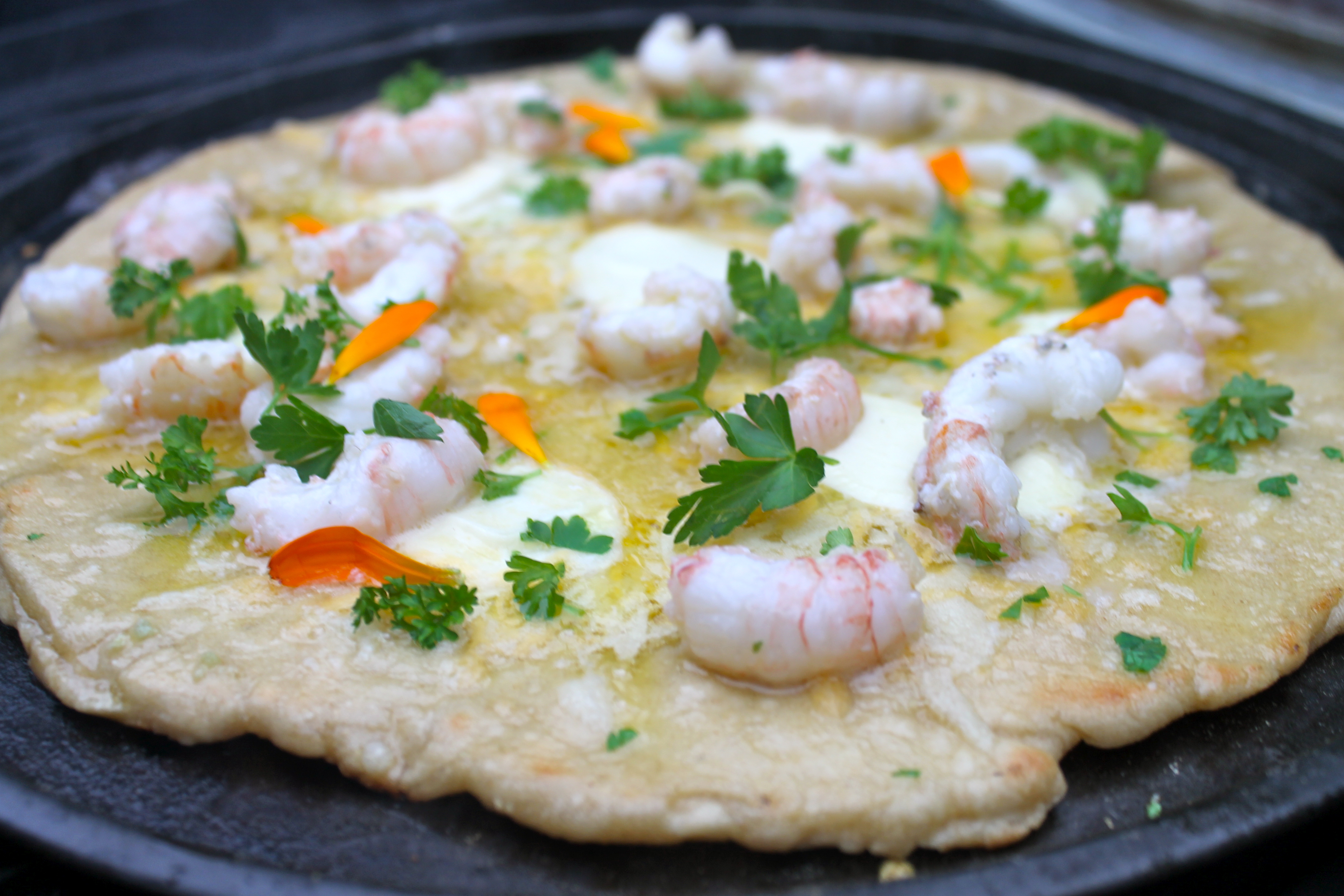 En aftur að ferðalaginu sem byrjaði á Víðum í Reykjadal í góðra vina hópi. Þar var eldað, bakað, brasað, sungið og trallað í marga góða daga með dásamlegu fólki. Humarpizzan var grilluð í tvígang þessa viku sem við dvöldum að Víðum – fyrst sem forréttur á undan nautasteik með Bérnaise og síðan sem einn af fjölmörgum réttum á sjávarrétta-kvöldi.