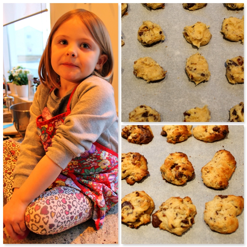Setjið með teskeið (eða lítilli ísskeið) á pappírsklædda bökunarplötu. Bakið við 200 C í 12 – 17 mínútur.