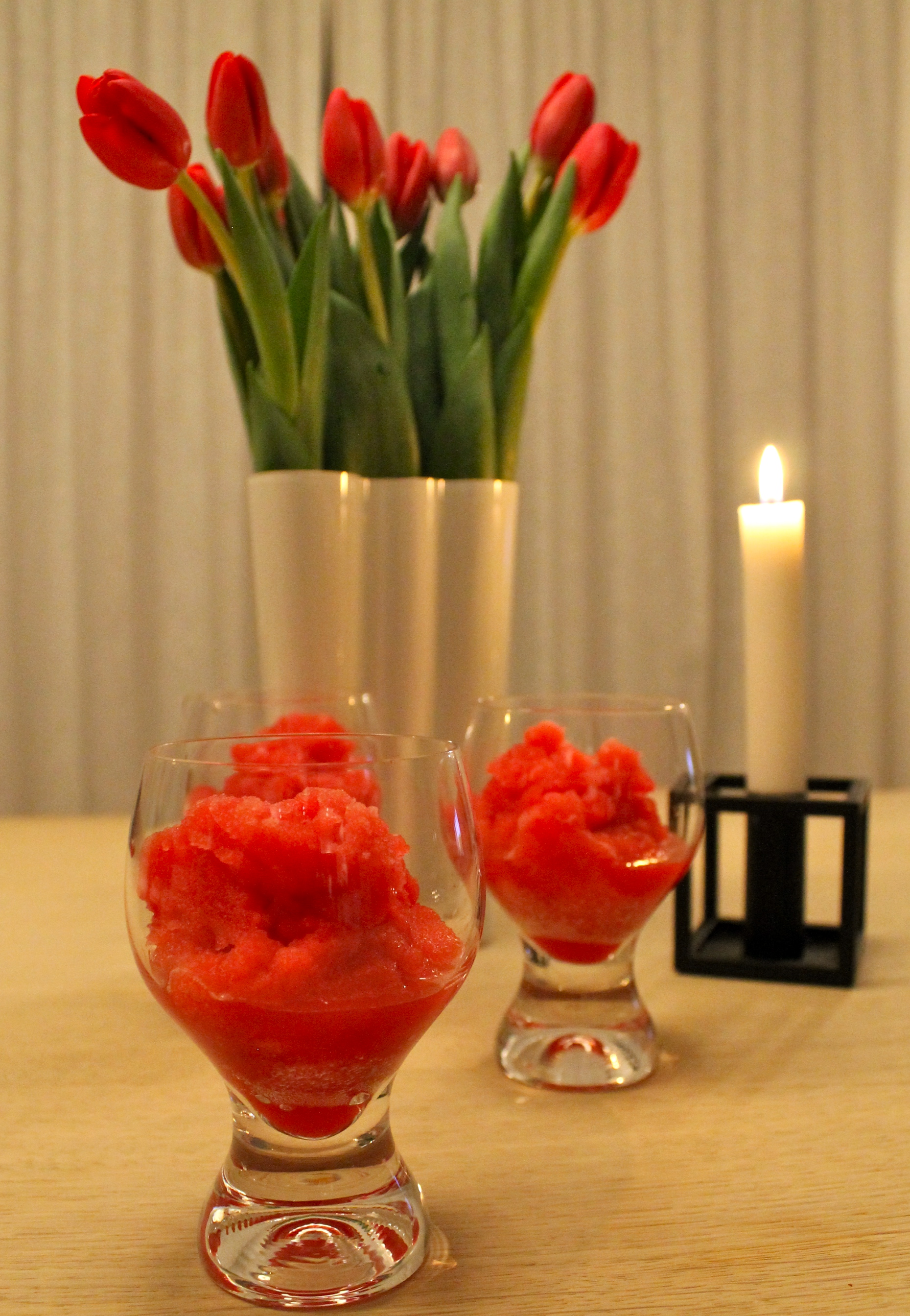 Heill mánuður frá síðustu færslu -það er met, met sem ég hyggst hvorki slá né jafna á næstunni. Ástæður blogghvíldarinnar eru margar svo sem gríðarlegt annríki, eitt gott ferðalag og því að ég hef haft um ansi margt að hugsa síðasta rúma mánuðinn. Í dag var dásemdardagur, fallegur, sólríkur, fullur af kærleika, smá vinnu og menningarviðburðum. Gott að enda slíkan dag á ferskum og góðum sorbet. Á Ítalíu er appelsínu-uppskeru-tími, blóðappelsínurnar eru um þetta leiti árs upp á sitt besta. Frú Lauga sér til þess að við getum notið þessara ávaxta sem eru í miklu uppáhaldi hjá allri fjölskyldunni. Ég fer regluglega og kaupi nokkur kíló, það er svo gott að fá sér nýkreistan blóðappelsínusafa á morgnana. Í kvöld gerðum við tilraun með blóðappelsínu-sorbet og viti menn, þvílíkir töfrar. Ummmmmm, svo dásamlega ferskur, hæfilega sætur og fullur af sól, hamingju og gleði. Unglingurinn galaði upp yfir sig „geðveikt, þessi verður að fara á bloggið mamma“. Er hægt að biðja um betri meðmæli?