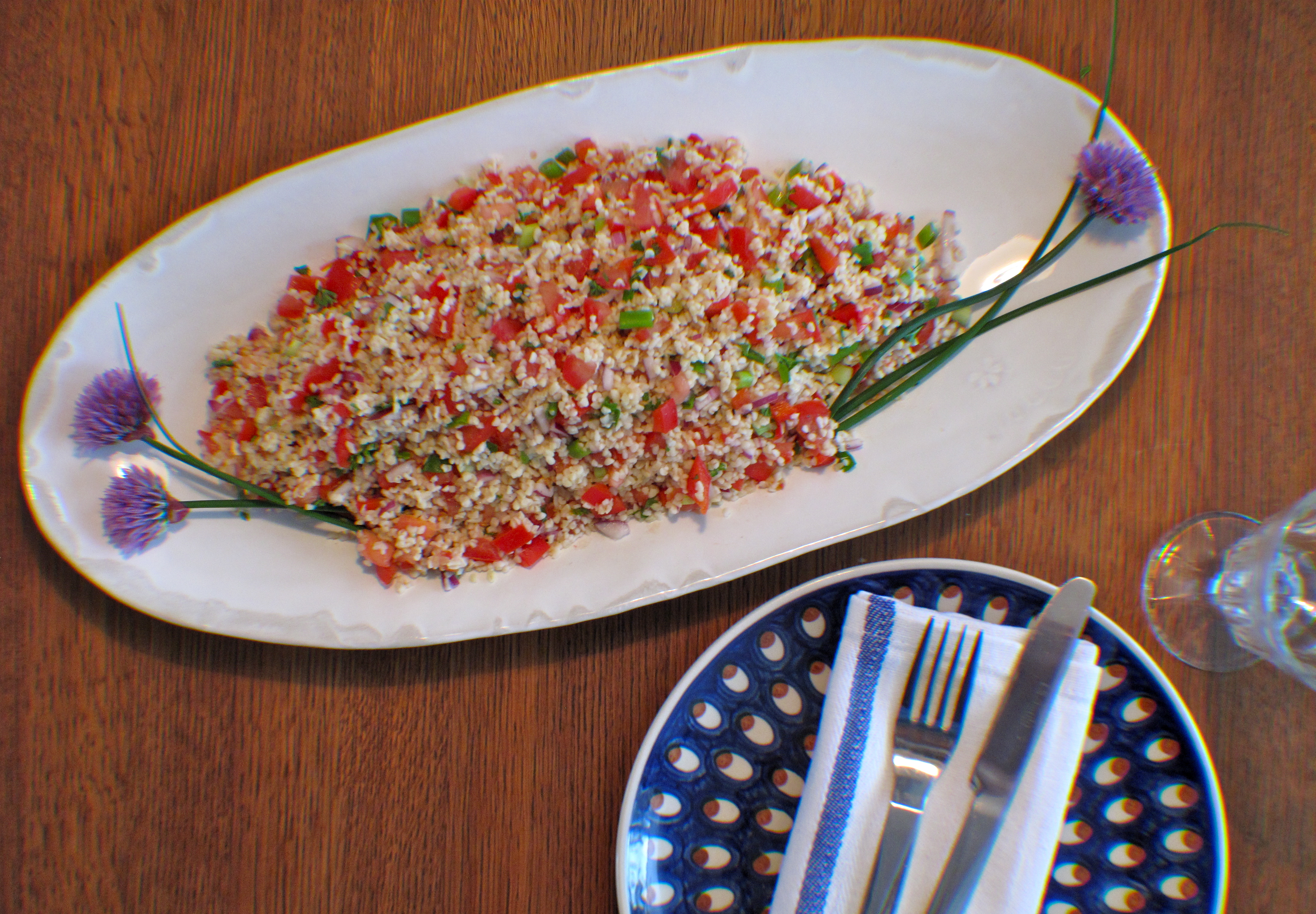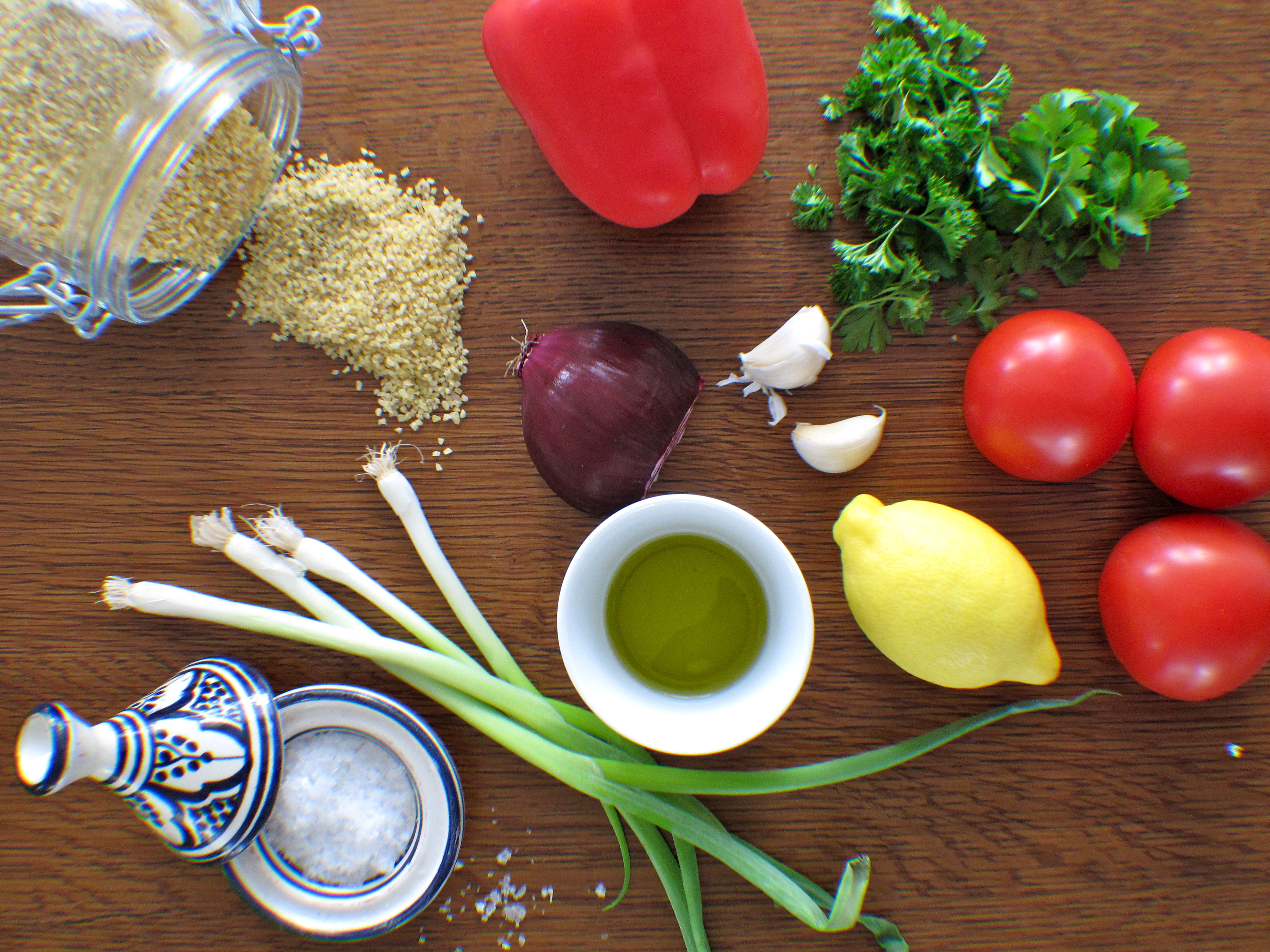 Oft er fersk mynta í uppskriftinni, en ég sleppi henni yfirleitt – finnst sítrónan og steinselja njóta sín betur án myntunnar – en auðvitað er það smekksatriði. Hlutföllin í þessari uppskrift eru ekki heilög – notið það sem til er hverju sinni – það eru t.d. oft hafðar gúrkur í Tabbouli, en þær átti ég ekki til í þetta sinn og því eru þær ekki tilgreindar í uppskriftinni minni hér.