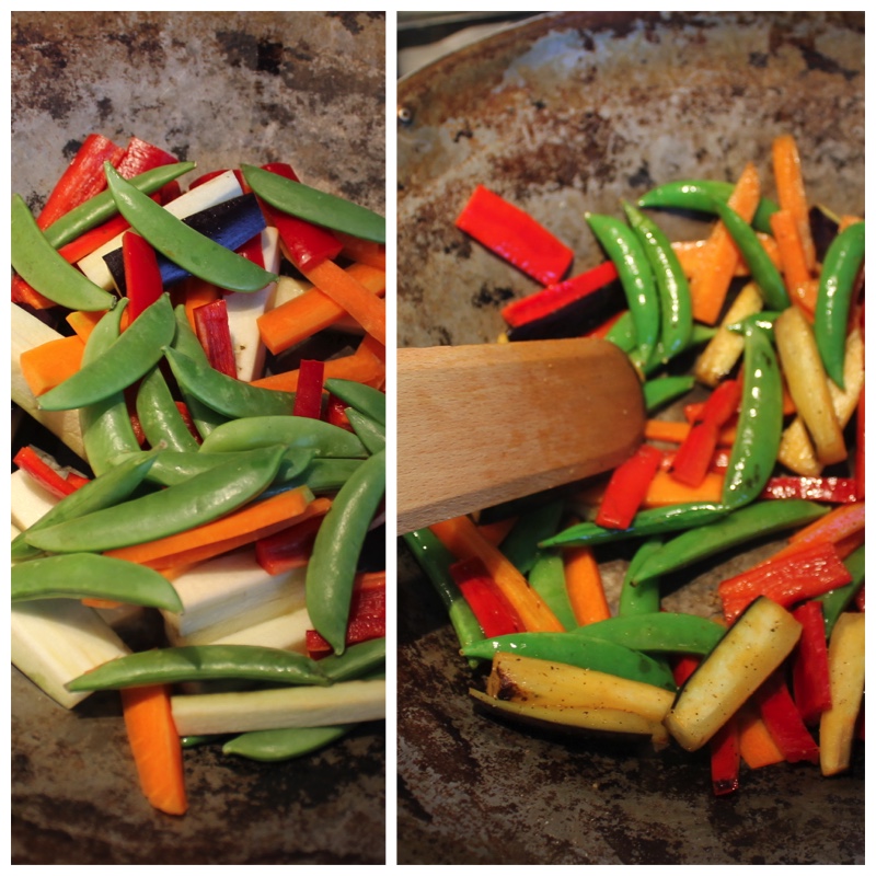 Veltið grænmetinu upp úr olíu og snöggsteikið á heitri wok pönnu í nokkrar mínútur – kryddið með salti og pipar. Stráið fersku gróft söxuðu kóríander yfir réttinn um leið og hann er borinn fram.