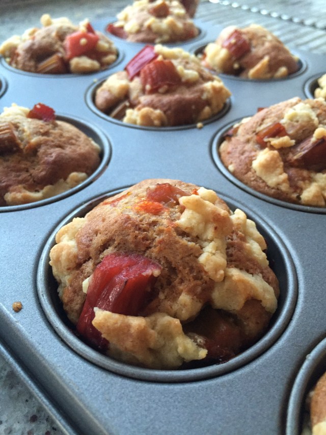 Rabarbara-tíðin er enn í hámarki þó langt sé liðið á sumarið enda vorið svalt og sumarið seint á ferð svo ekki sé fastar að orði kveðið. Ég sá uppskrift svipaða þessari í Donna Hay tímaritinu sem ég er áskrifandi að á I-Padinum mínum. Talandi um I-Pad – þessi færsla er sú fyrsta sem gerð er á síma og I-Pad – heimilistölvan gerði uppreisn, harði diskurinn gaf sig og tölvan því ónothæf í einhvern tíma – vonandi ekki mjög lengi þó. Upplagt tækifæri til að reyna nýjar aðferðir – blogga á símann og I-Padinn – allar myndir sem þessari færslu fylgja eru teknar á símann og færslan skrifuð á paddann.