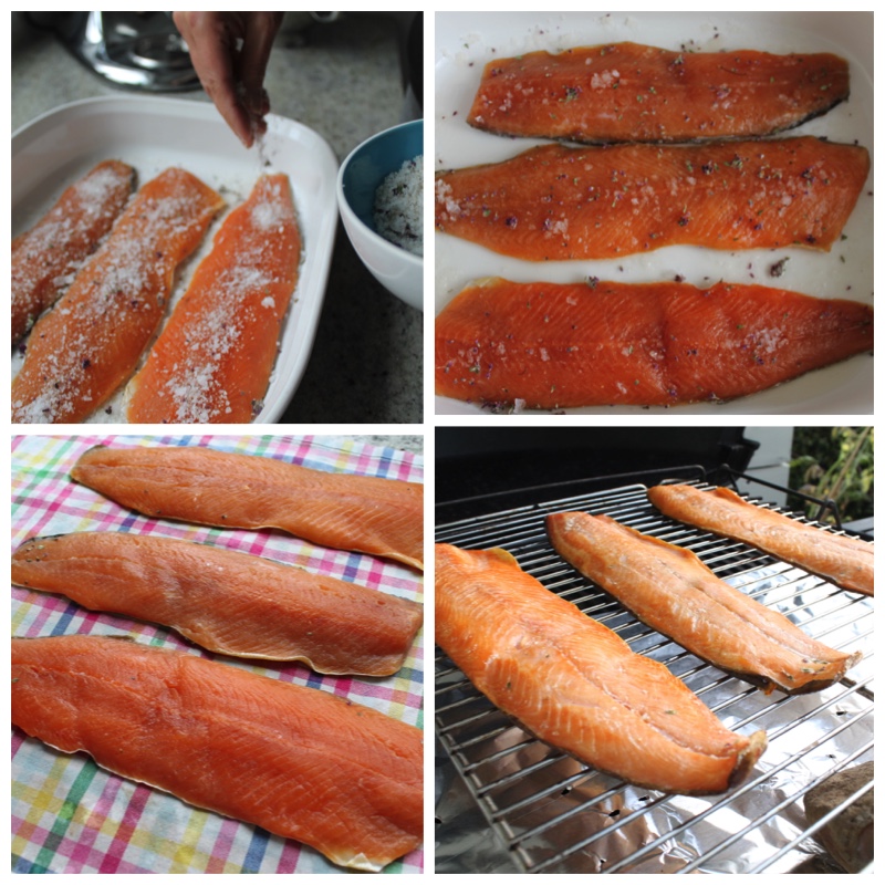 Kvöldverðurinn í Vatnsholti þetta sunnudagskvöld var með ansi góðum vááá faktor að mati alls heimilisfólksins. Það hefur lengi staðið til að heitreykja silung sem við veiddum fyrir nokkru, flökuðum og frystum. Við áttum 3 falleg flök til verksins.