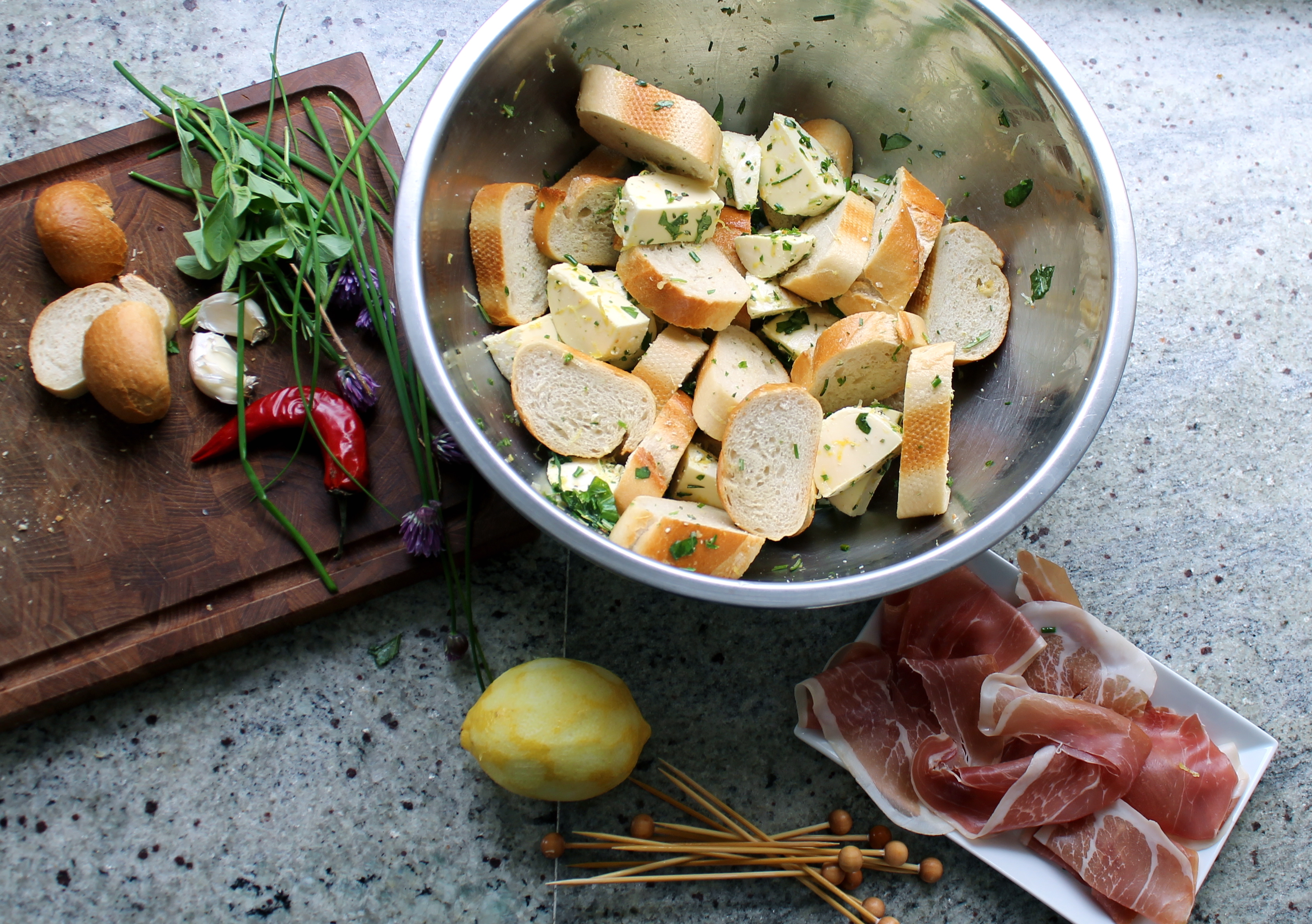 - hvítlauksolía (hvítlaukur kraminn og skorinn smátt settur út í góða ólífuolíu)